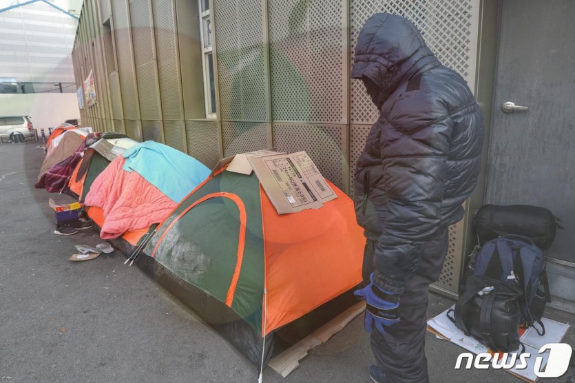 서울역 광장에 마련된 노숙인 텐트 모습 ⓒ 뉴스1 성동훈 기자