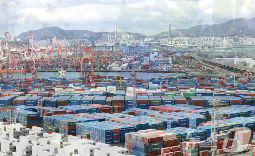 부산항 신선대부두와 감만부두 야적장의 컨테이너 모습.ⓒ 뉴스1 윤일지 기자