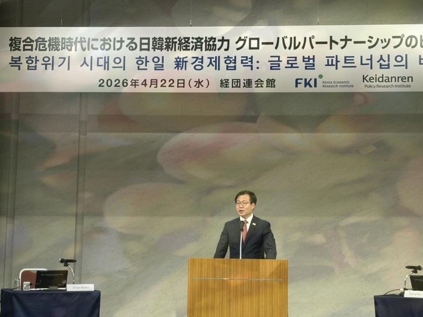여한구 산업통상부 통상교섭본부장 (도쿄=연합뉴스) 조성미 특파원 = 여한구 산업통상부 통상교섭본부장이 22일 일본 도쿄 게이단렌(일본경제단체연합회·경단련) 회관에서 한국경제인협회 산하 한국경제연구원(한경연)과 게이단렌이 공동으로 개최한 '복합위기 시대의 한일 신 경제협력 세미나'에서 기조연설하고 있다. 그는 한국과 일본이 불확실성이 커지는 국제경제 환경 속에 반도체 등 첨단산업 공급망 및 에너지 안보 측면에서 협력을 강화해야 한다고 강조했다. 2026.4.22 [email protected]