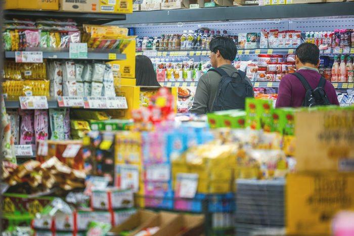 서울 중구 명동에 위치한 마트를 찾은 여행객들이 과자, 라면 등 K푸드를 살펴보고 있다.ⓒ뉴시스
