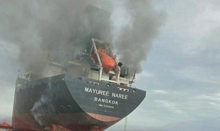 [서울=뉴시스]호르무즈 해협을 항해하던 태국 화물선 마유레 나레호가 11일 공격을 받았다고 태국 해군이 밝혔다. 해군은 현재까지 20명의 승무원이 구조돼 오만으로 이송됐다고 덧붙였다. 사진은 공격받은 마유레 나레호의 모습. <사진 출처 : 스플래시247닷컴> 2026.03.11.