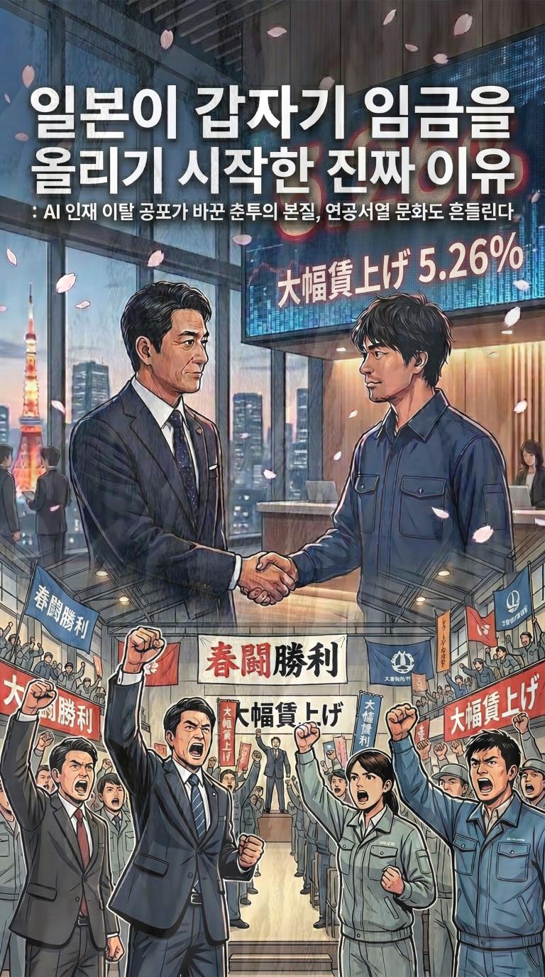 일본이 매년 춘투를 반복하는 이유는 단순히 물가가 올라서가 아니다. 디지털 시대에는 사람이 경쟁력의 핵심이라는 사실을, 30년간의 정체를 통해 뼈아프게 배웠기 때문이다. AI 엔지니어, 데이터 사이언티스트, 디지털 전략가는 더 좋은 조건이 있는 곳으로 움직인다. 임금 경쟁력을 잃은 기업은 결국 인재를 잃고, 인재를 잃은 기업은 디지털 경쟁에서도 뒤처진다.