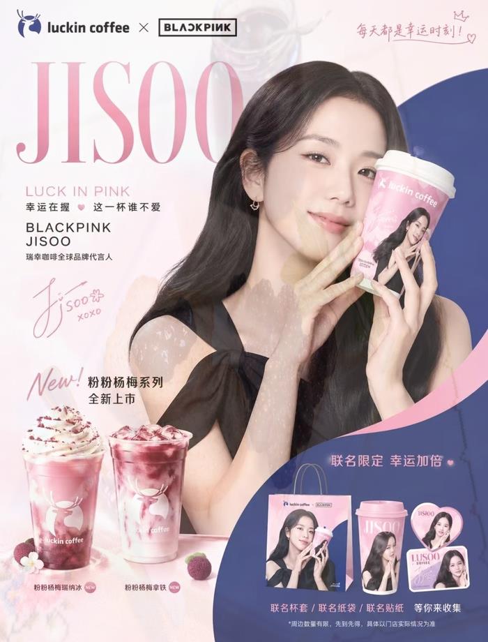 K팝 아이돌 그룹 블랙핑크의 멤버 지수가 최근 중국 최대 커피 프랜차이즈인 루이싱커피의 광고 모델로 등장했다. <샤오홍슈>
