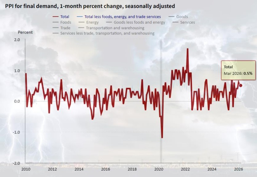 3월 PPI 전월 대비 0.5% 상승