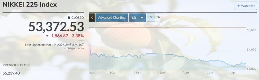 중동 지역 가스전 폭격으로 국제유가가 급등하고 미국 연방준비제도의 매파적 기준금리 동결 소식이 겹치면서 아시아 주요 증시가 일제히 하락했다. 일본 닛케이225지수는 3.38% 하락했고, 중국 CSI300과 대만 자취안 지수도 각각 1.61%, 1.92% 떨어졌다. 이러한 상황은 글로벌 인플레이션 우려와 지정학적 리스크가 복합적으로 작용한 결과로 분석된다.